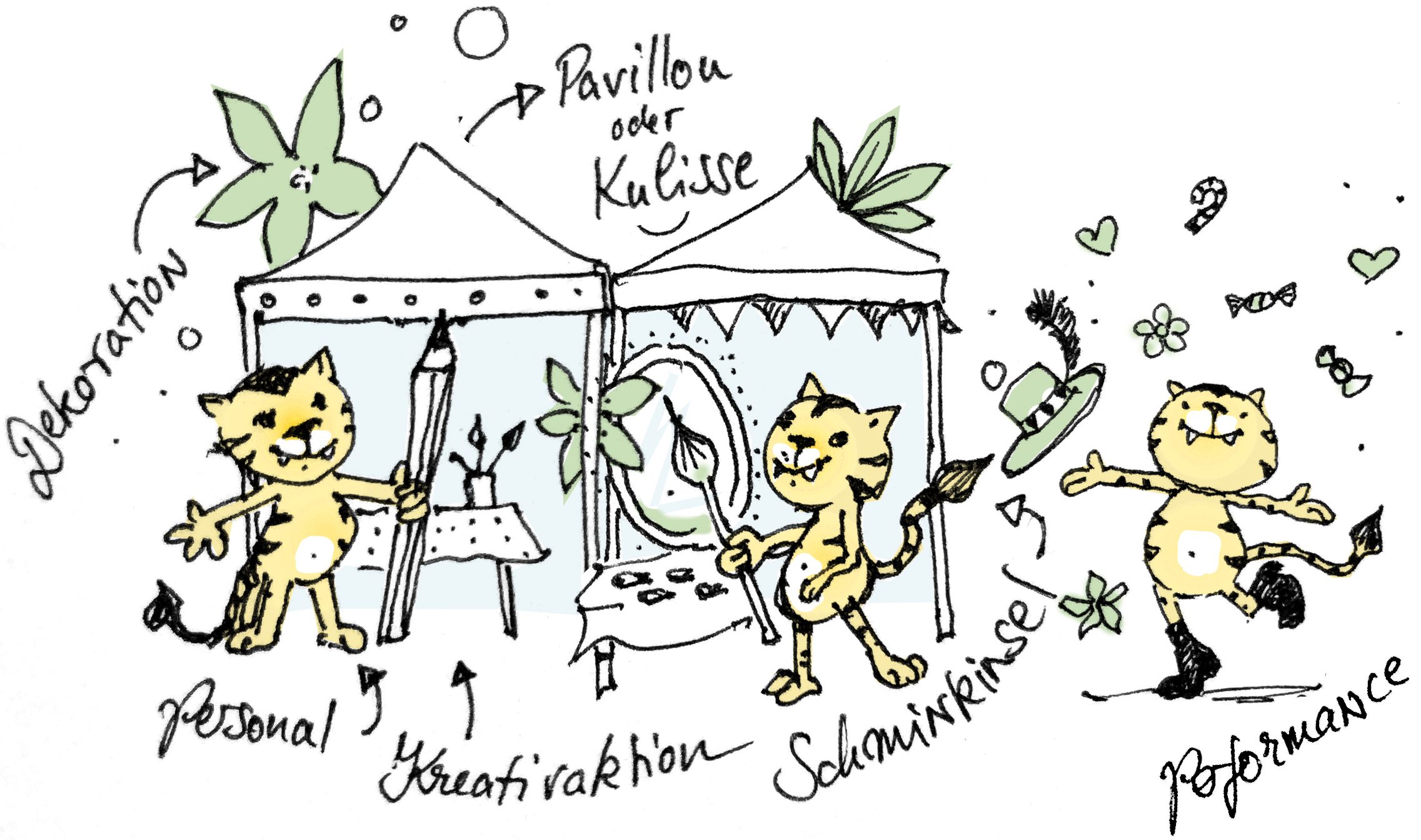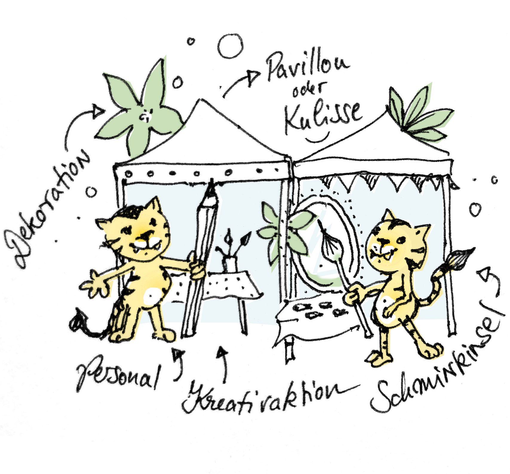 Unsere Aktionen sind ein echter Hingucker! Als WalkAct z.B. begrüßen wir Ihre Kunden, führen sie charmant in den Laden und begeistern sie mit kleinen Aufmerksamkeiten. Auf unserer dekorativen Schminkinsel – z.B. im Eingangsbereich Ihres Shops – verzaubern wir Ihre kleinsten Kunden in farbenfrohe Schmetterlinge oder fabelhafte Elfen, in verwegene Piraten oder gefährliche Tiger. Und in unserer Kreativwerkstatt machen wir mitreissende Gestaltungsaktionen direkt bei Ihnen vor Ort.
